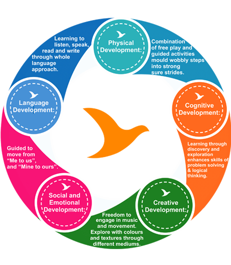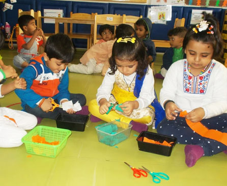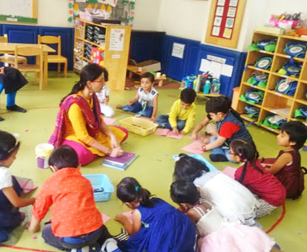 This programme has been specially curated for the little children in the age group of 2 years to 3 years. The programme focuses on making the process of learning 'joyful' in a safe and secure learning environment. Though we have well planned schedule for this age group, the schedule also provides the teacher complete flexibility to maneuver the session as per the needs of the children in the class and the facilitator 'moves with the child' at his or her pace. Utmost care is taken to ensure that the children are given experiences that take care of the most important age appropriate life skills required. Skills of dressing up, taking care of own self, feeding oneself, understanding own bowel needs and be able to use the wash room, etc are included in day to day routine.