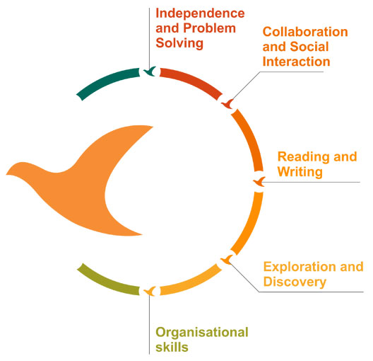 While catering to the age group of 4 to 5 years, the facilitator is ready to take the young learners to the next level of 'achievement'. The skill sets are by now showing preferences and the need to challenge them becomes imperative. Learning by exploration remains the style where the young learner achieves a sense of fulfillment on completion of a task and this in turn gives him/ her confidence required to move ahead and learn more.