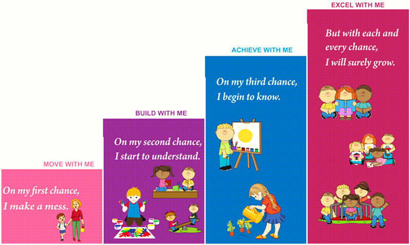 'Excelling at a task' is the focus of the young learner now and for that facilitator works as a motivator. The skills sets by now have evolved and the learner is all set to bring about the finesse into every action. This is best brought out by the repeated practice session ingrained into the curriculum. This is also the stage where the young learner is prepared for formal schooling as the next level and hence given a chance at portraying skills and knowledge on a common platform where the ever important Learning Outcomes of a Preschool are visible.